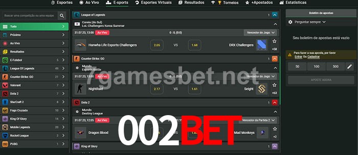 O 002Bet oferece uma grande seleção de opções de apostas em e-sports com probabilidades competitivas